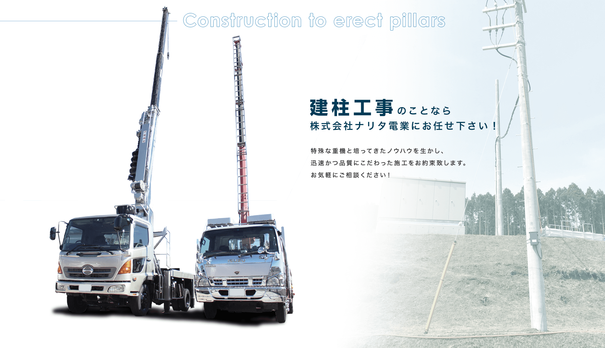 また建柱工事にも力を入れて取り組んでおり電柱の建柱をはじめ皆様に安定した電力が供給出来るような仕事も行っております。総合電気工事、建柱工事をお考えでしたら株式会社ナリタ電業にご相談下さい。